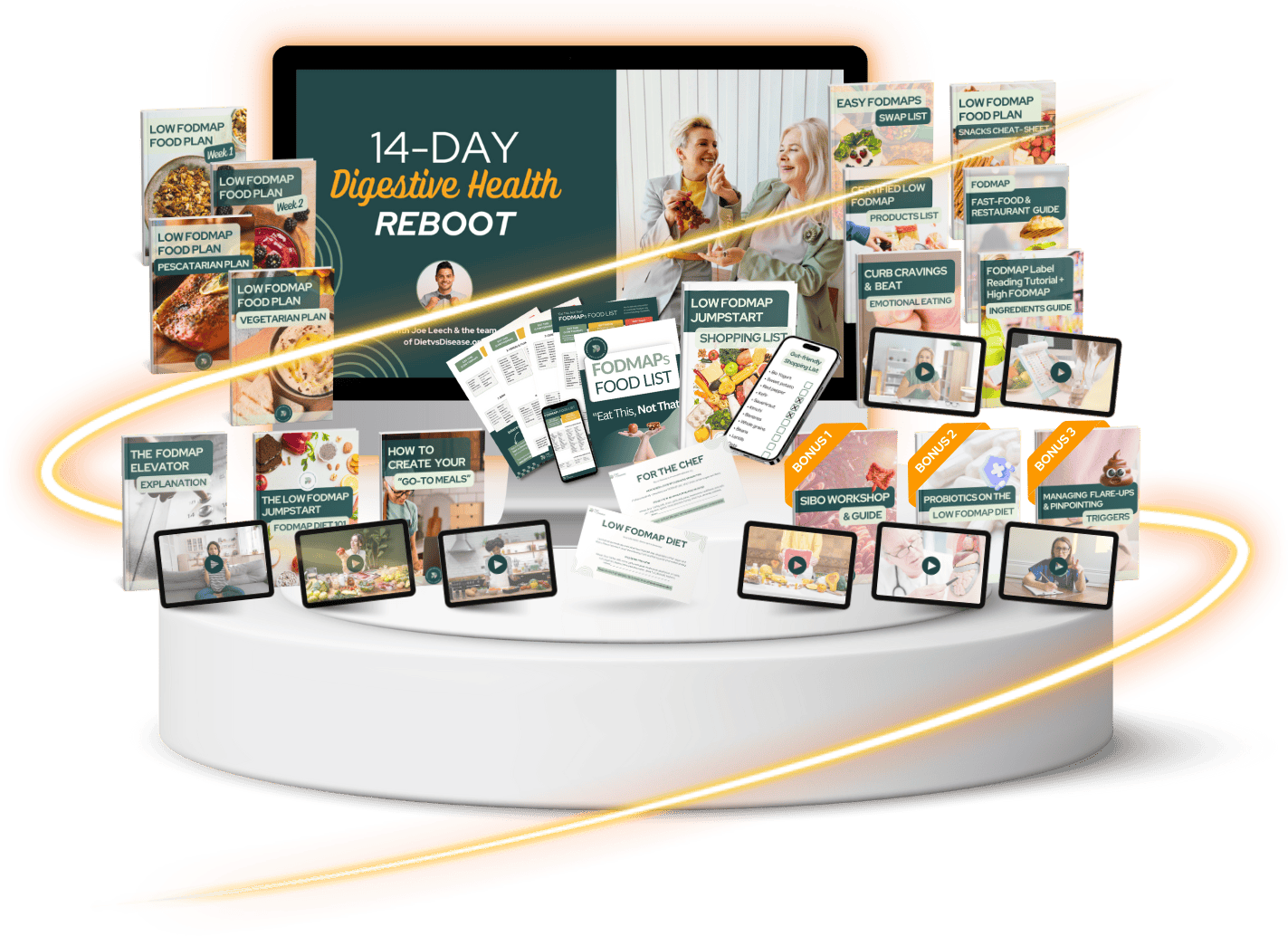The 14-Day Digestive Health Reboot delivers real results by guiding users seamlessly through the Low FODMAP Diet in a digital course format.